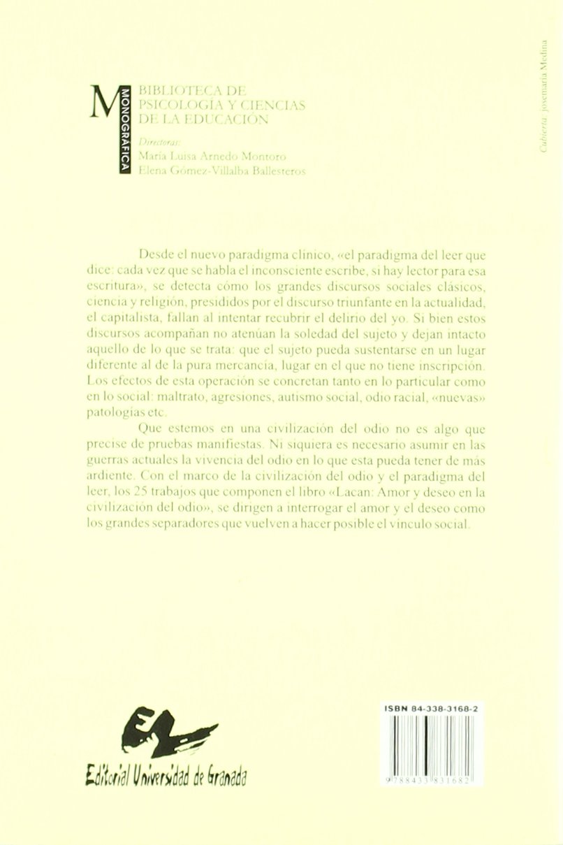 Que estamos en una civilización del odio no es algo que precise de pruebas manifiestas, ni siquiera es necesario asumir en la guerra actual la vivencia del odio en lo que ésta pueda tener de más ardiente. Con el marco de la civilización del odio y el paradigma del leer , los 25 trabajos que componen el libro Lacan: amor y deseo en la civilización del odio, se dirigen a interrogar el amor y el deseo como los grandes separadores que vuelven a hacer posible el vínculo social.